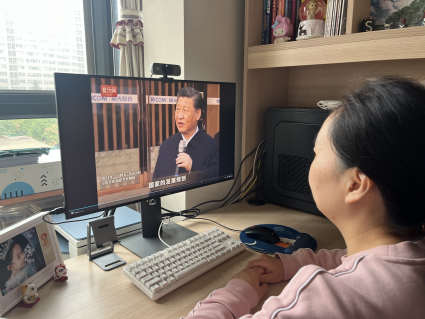 直播现场,党员教师专注聆听全会报告,认真记录核心要点。全会关于“统筹教育强国、科技强国、人才强国建设”等部署,引发了老师们的共鸣。直播结束后,教师党员结合教学科研岗位实际撰写心得,聚焦课程与人工智能前沿技术融合等方向梳理感悟并进行了线上交流。