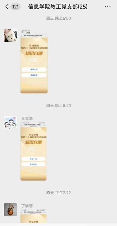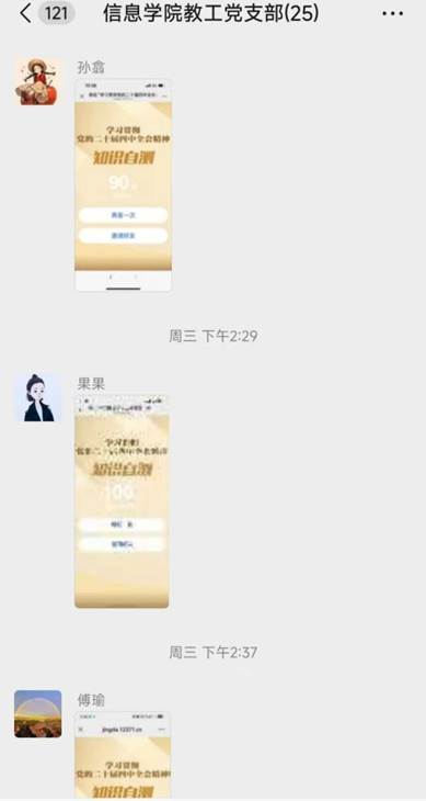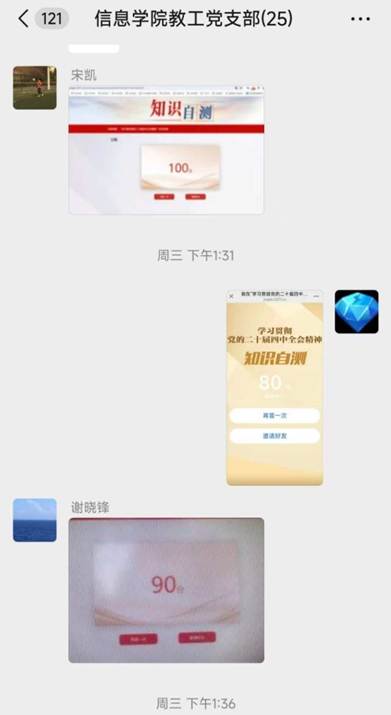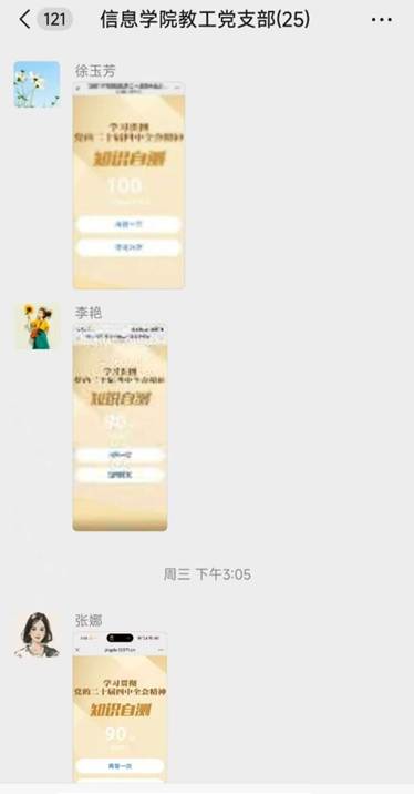 2026年1月7日下午,信息与未来技术学院教工党支部以在线形式开展“学习贯彻党的二十届四中全会精神”专项考核主题党日活动,活动通过支部微信群组织,全体教工党员参与。